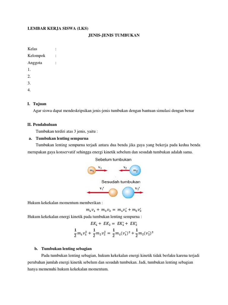 Doc 3 Macam Tumbukan Hukum Kekekalan Momentum Jenis Jenis Tumbukan Putra Penyendiri Academia Edu