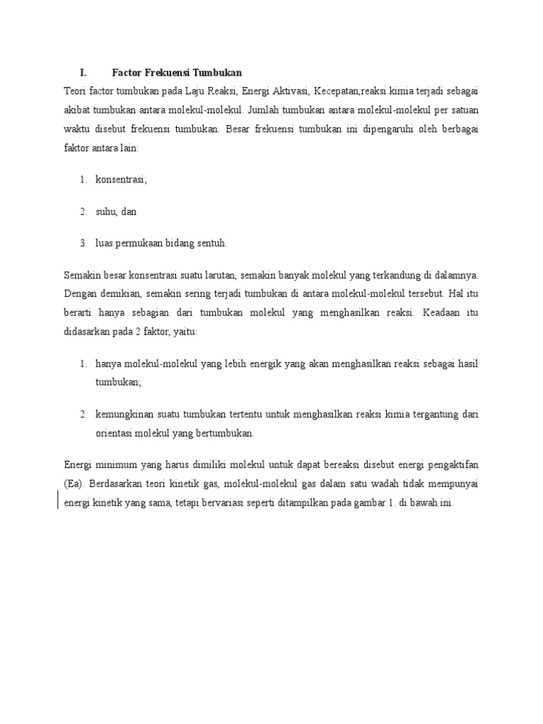 Teori tumbukan dan faktor yang mempengaruhi laju reaksi dalam postingan kali ini rukim id akan berbagi informasi materi kimia kelas 11 semester 1 kurikulum 2013 yaitu tentang laju reaksi tulisan ini dapat dijadikan catatan kimia yang dapat di download filetype pdf. Agar sebuah reaksi kimia dapat terjadi maka partikel reaktan harus bertumbukan satu sama lain. Teori tumbukan menyatakan bahwa ketika partikel reaktan yang sesuai saling bertumbukan hanya persentase tertentu dari tumbukan.