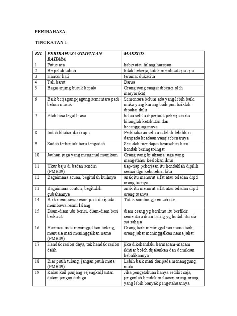 Senarai Peribahasa Bm Sek Ren Pages 1 5 Text Version Anyflip