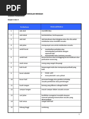 Sukatan Pelajaran Sekolah Rendah Senarai Peribahasa Darjah 3 Dan 4
