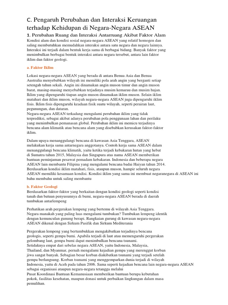 Perubahan Ruang Dan Interaksi Antaruang Akibat Faktor Alam Negara Asean Mushlihatun Syarifah